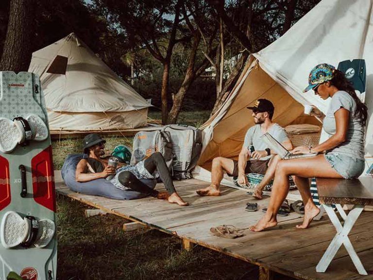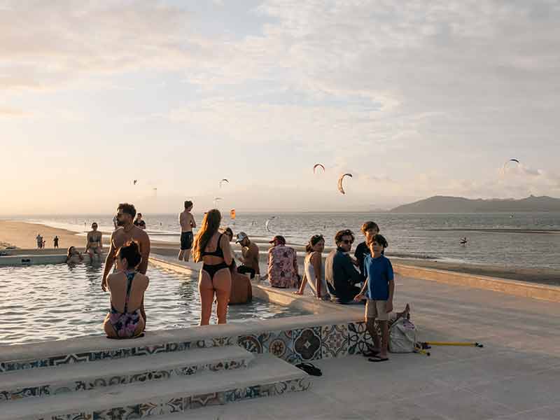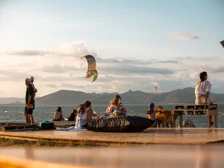 Laissez-nous vous ravitailler entre les sessions et communiquer avec d'autres kitesurfeurs. Profitez d'un cocktail au coucher du soleil et écoutez nos sessions de musique live.