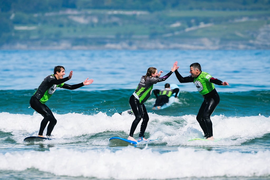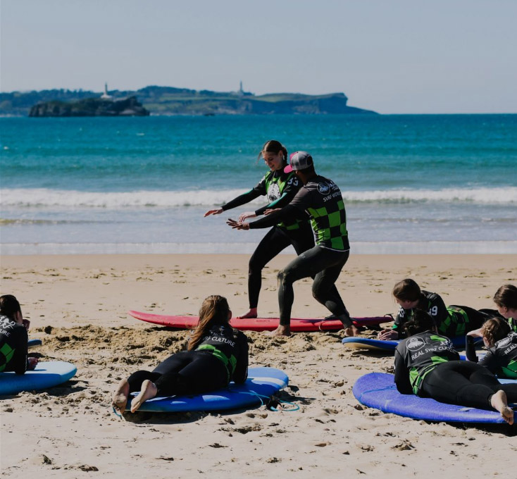 We offer surfing lessons for all levels on the beaches of Somo and Loredo, overlooking Santander Bay. These beaches stretch for over 7 km of fine sand, with waves suitable for all levels, allowing you to enjoy surfing all year round. Make the most of the Cantabrian coast’s natural beauty whilst riding perfect waves.