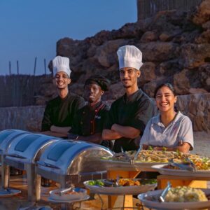 Breakfast, lunch and dinner are served in the restaurant. Our chef creates a delicious fusion of traditional Moroccan cuisine and European dishes, combining the rich exotic flavours of Morocco with contemporary European influences for a unique culinary experience: fresh fish, meat and salads. We are happy to cater to your dietary preferences or requirements to ensure a tailor-made experience for each guest. The dining area is completely sheltered from the wind. All meals are included.
