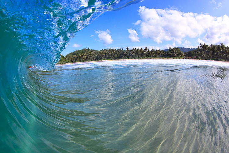Located on the island of teupah, 1 hour by boat, this right-hander rolls violently onto a point, rising out of very deep water and breaking in very little water. Can hold waves over 3 metres. The nastiest, fastest wave around, a perfect, photogenic barrel. Experienced riders only!
