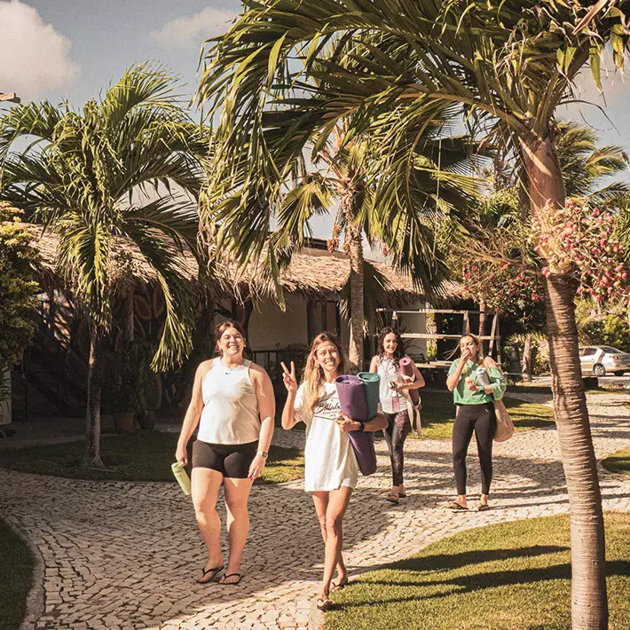 Chaque jour, nous nous retrouvons dans le luxuriant jardin tropical pour une séance de yoga d’une heure, entourés du chant des oiseaux et du doux bruissement des palmiers. La chaleur du Brésil et le flux apaisant du yoga rechargent tes batteries et t’infusent d’une énergie nouvelle.