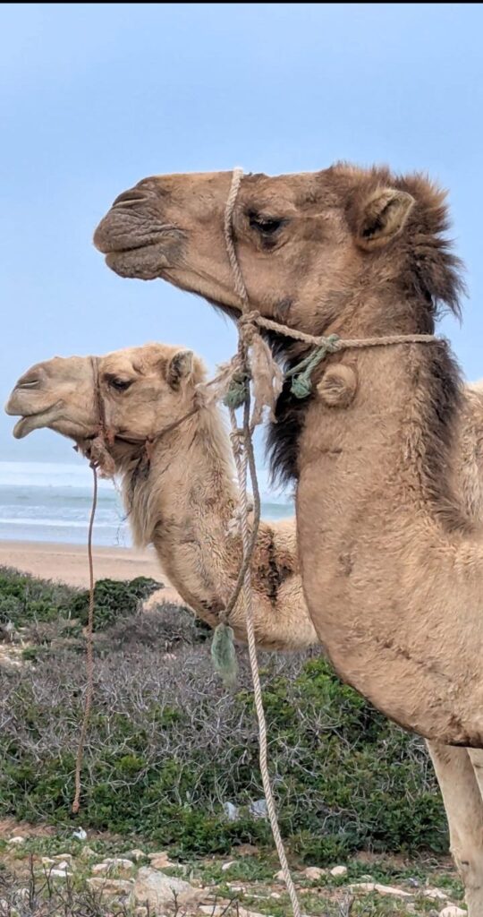 Au-delà de la plage et des vagues, Sidi Kaouki révèle son âme dans la simplicité de son quotidien. Les enfants jouent pieds nus dans le sable brûlant, les pêcheurs ramènent leurs filets remplis d’orphies et de daurades argentées, et les dromadaires patientent tranquillement sous le vent chaud du désert.