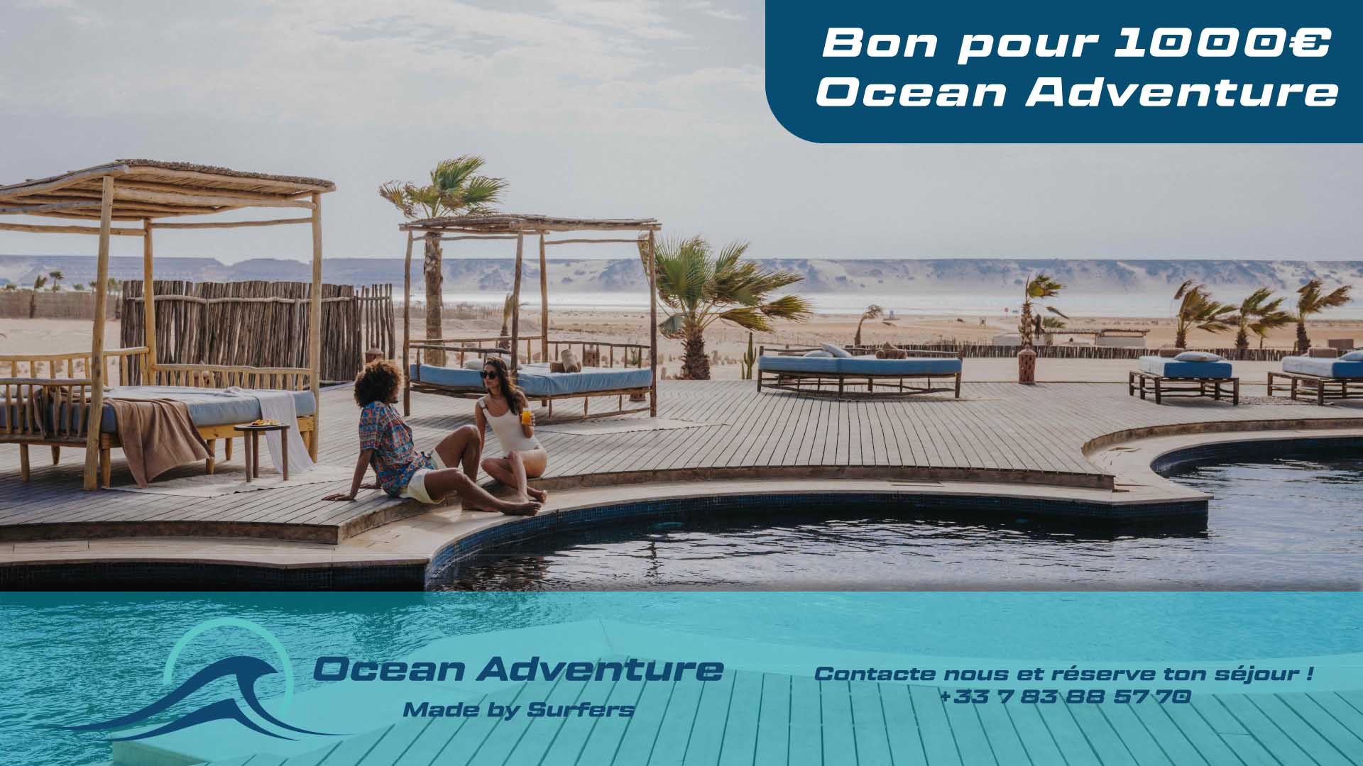 Le Bon Cadeau est valable sur l’ensemble du catalogue Ocean Adventure, que vous souhaitiez offrir un surf trip en France (Hossegor, Bretagne, Landes…), une aventure kite à Dakhla, un surf camp au Maroc, une retraite yoga & surf, ou une expérience à l’autre bout du monde.